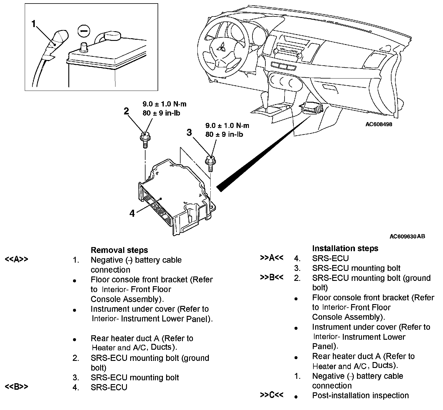 ]]B[[ SRS-ECU MOUNTING BOLT (GROUND BOLT) INSTALLATION
