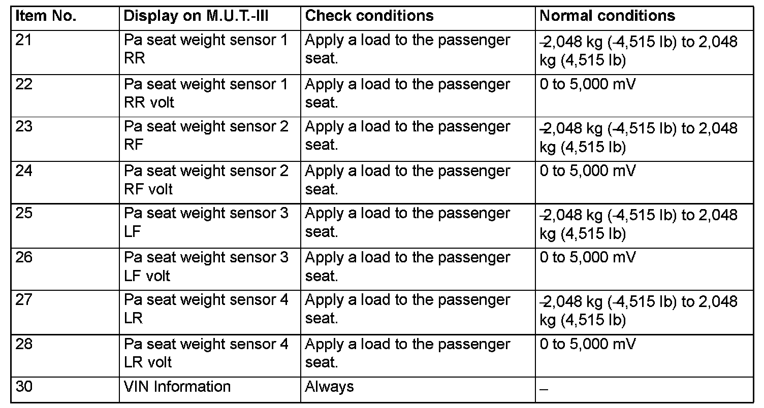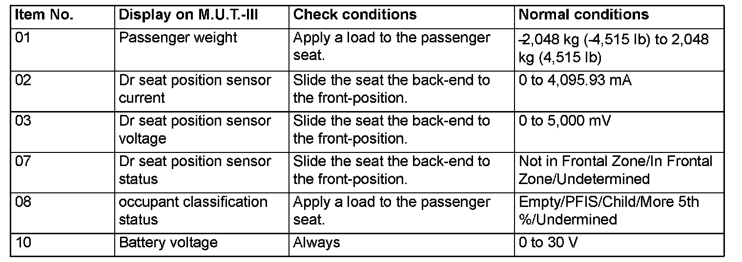 The following items can be read by the scan tool from the occupant classification-ECU input data.