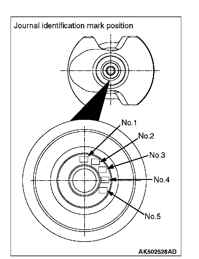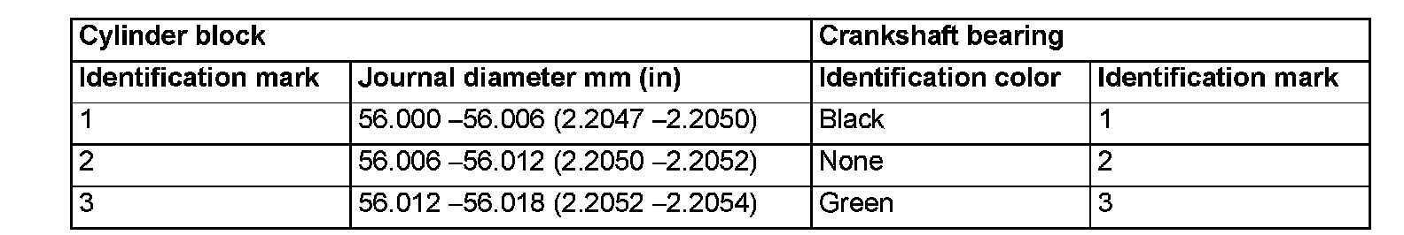 When replacing the crankshaft bearing upper, select a bearing with the size corresponding to the crankshaft journal diameter in the table below.