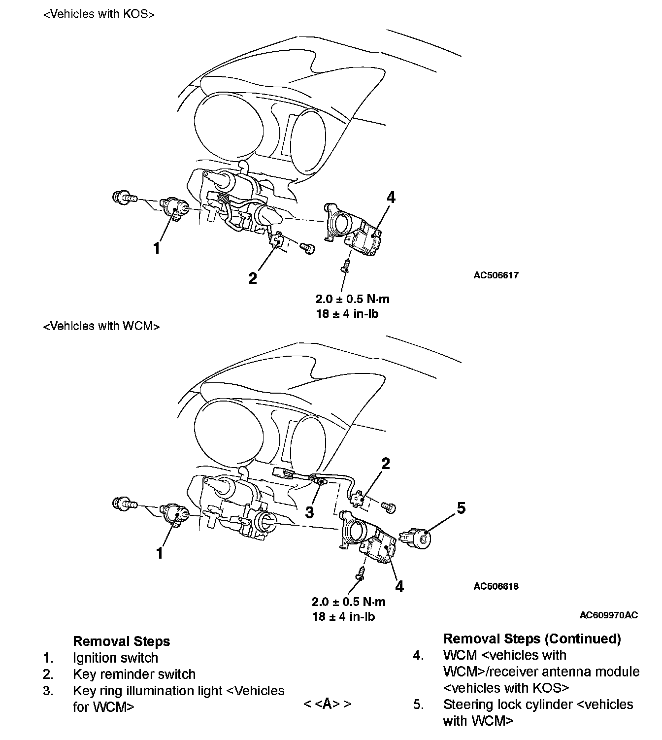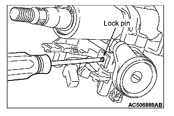 2. With using a cross-headed screw driver (small) or similar items to press in the lock pin, remove the ignition key, and then remove the steering lock cylinder.
