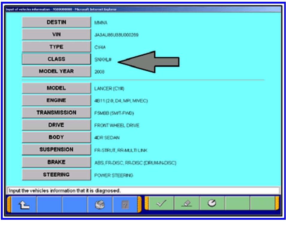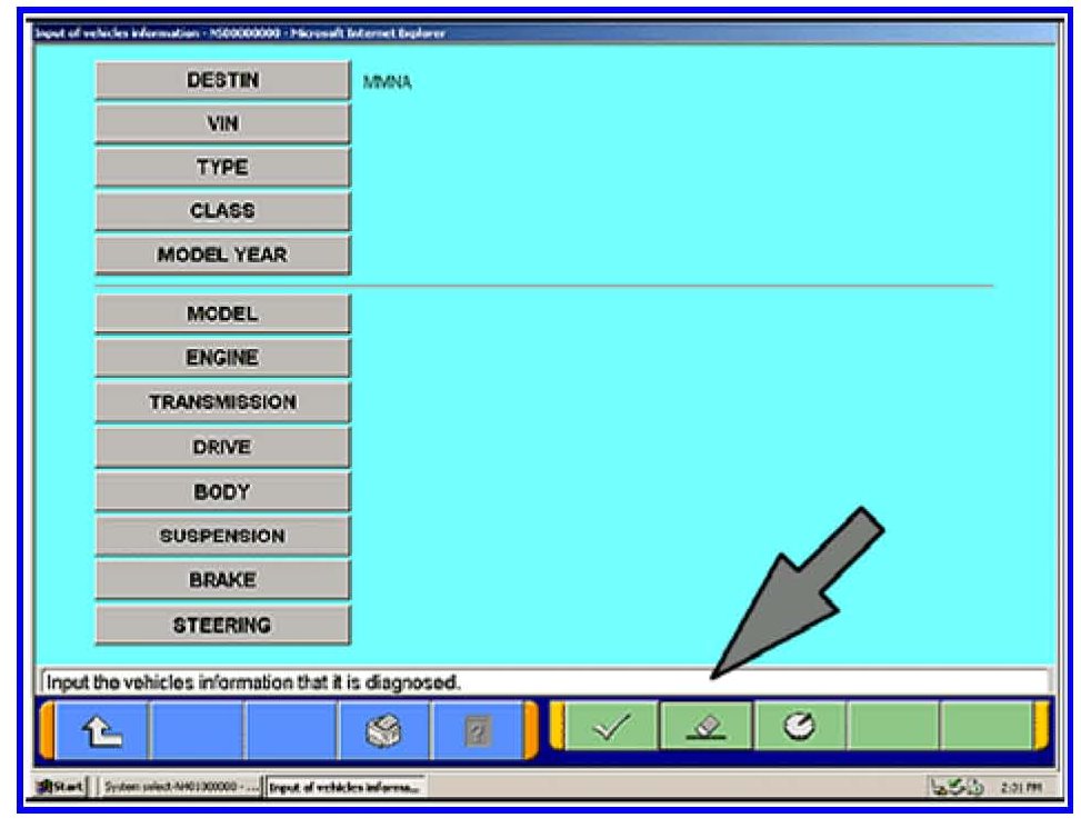 5. When this screen appears, click the eraser icon near the bottom center. This will erase the VIN information currently in memory. Click the VIN button at the upper left of the screen.