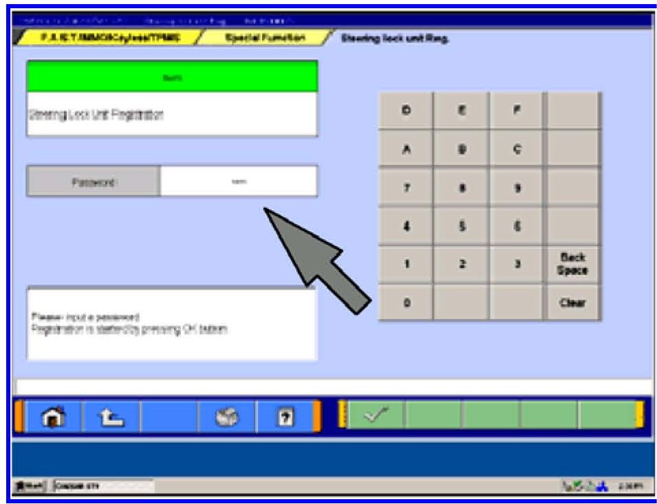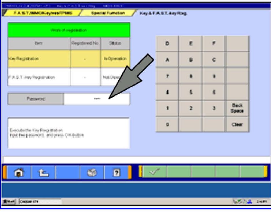 3. Input the Key Register Password. Then click on the check mark at the bottom of the screen.