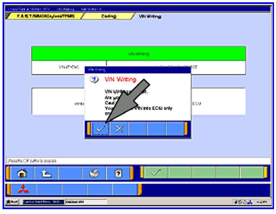6. When VIN writing is complete, this screen will appear. Click the check mark to confirm VIN writing.