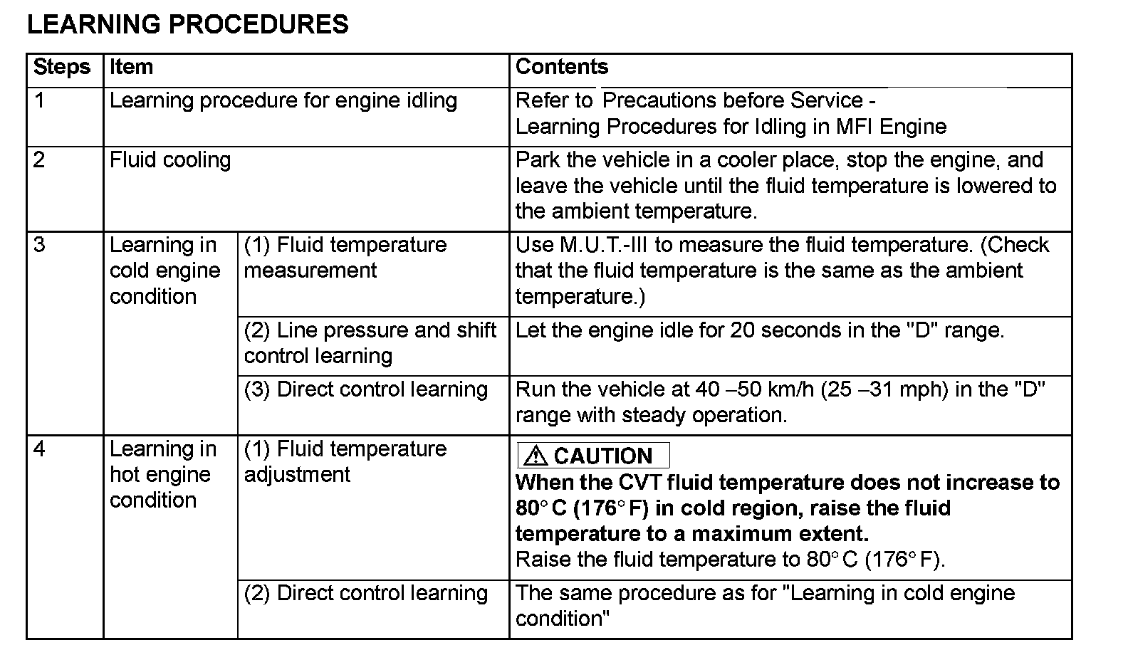After initialization, the TCM does not have any learned value. This may degrade the shifting operation quality. The learning procedure is described below.