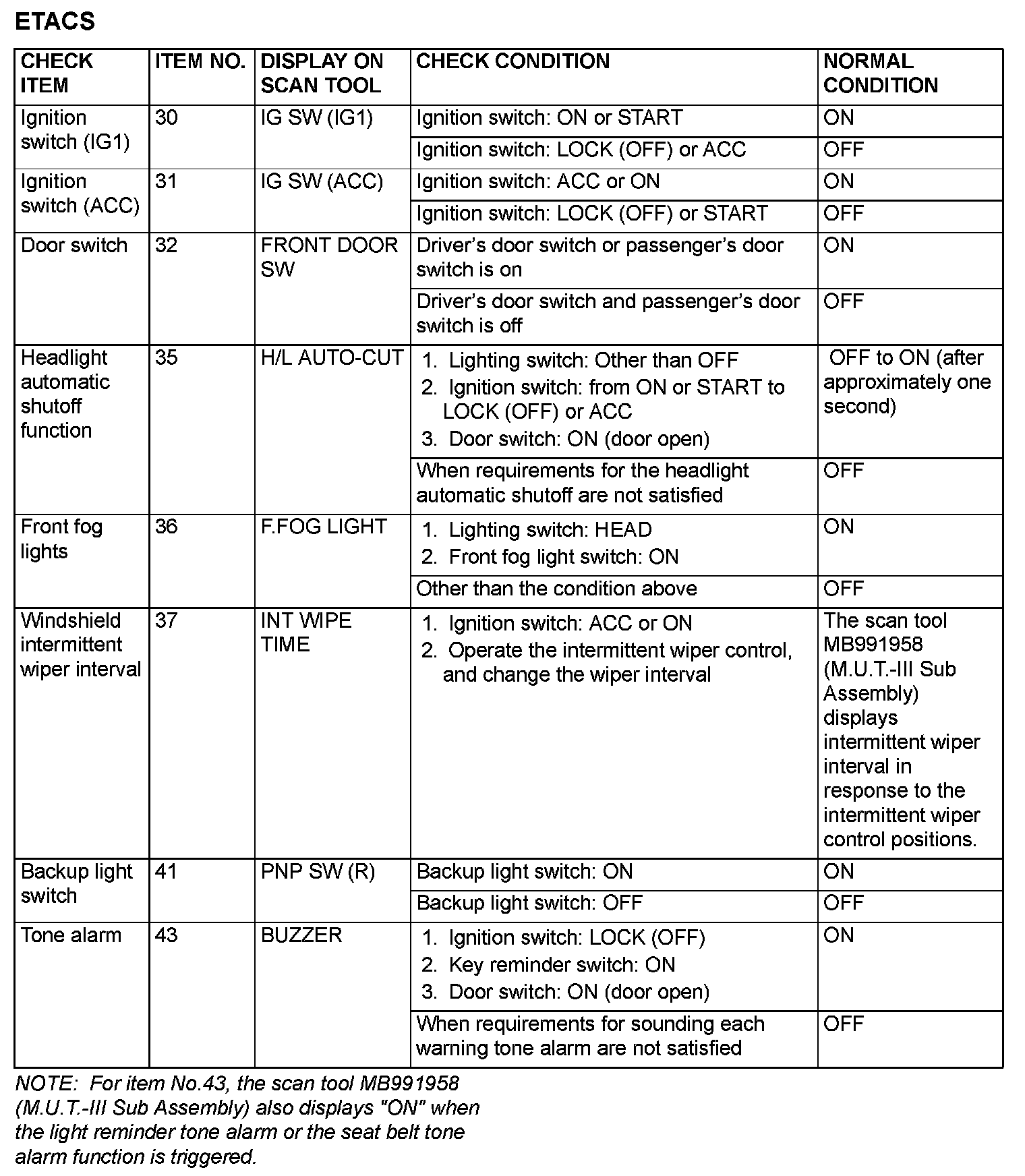 Data List Reference Table - ETACS-ECU: