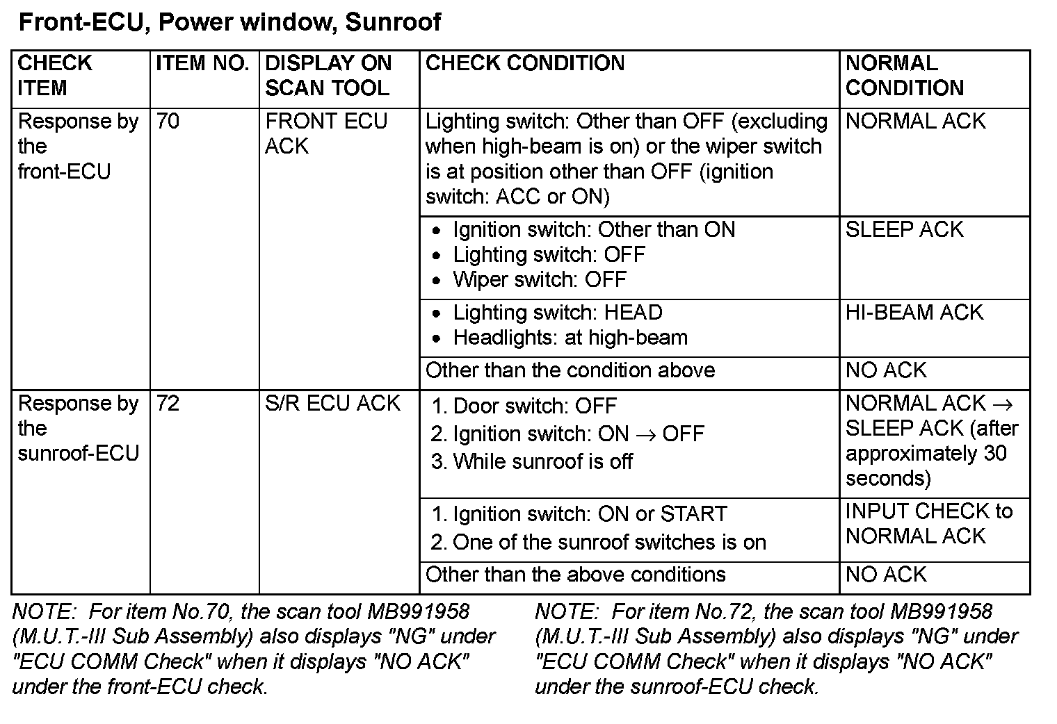 Data List Reference Table - Front-ECU, Power Window, Sunroof-ECU: