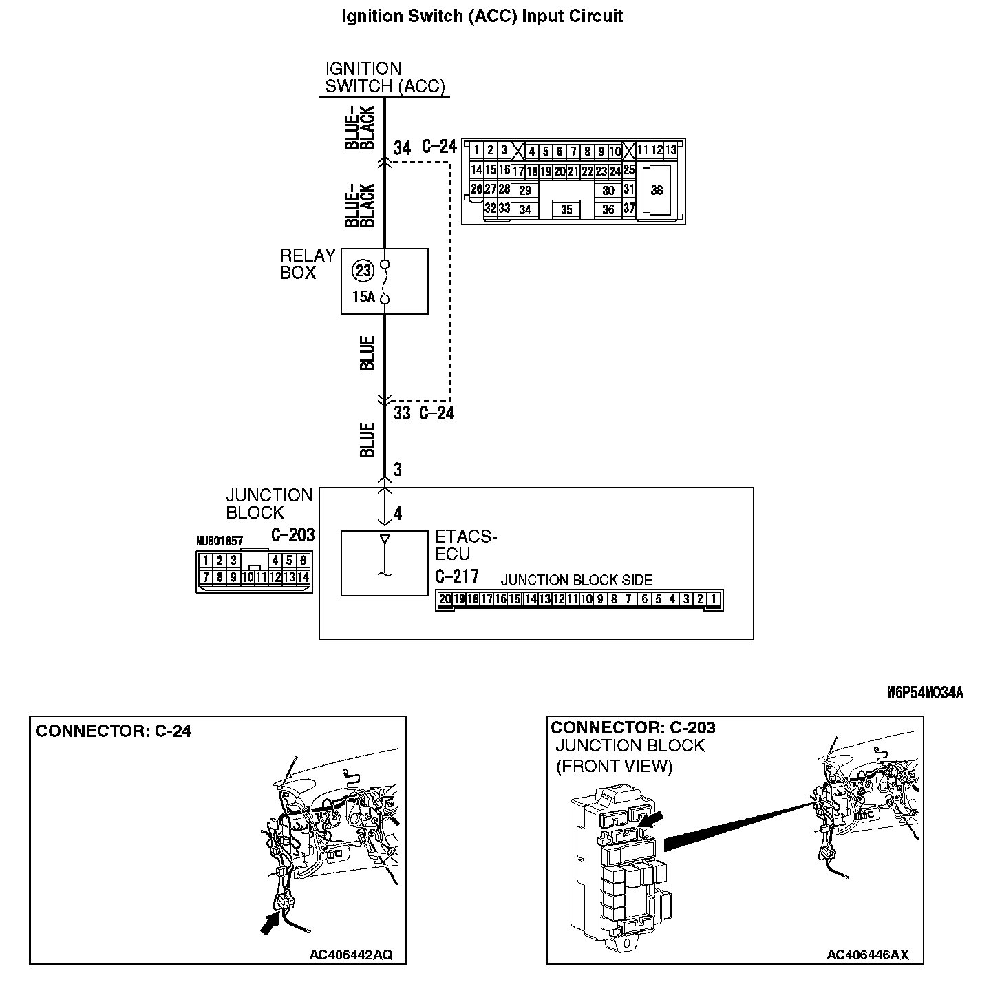 STEP 3. Check the wiring harness between ETACS-ECU connector C-217 (terminal 4) and the ignition switch (ACC).