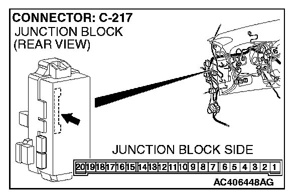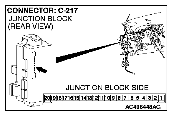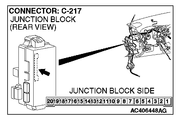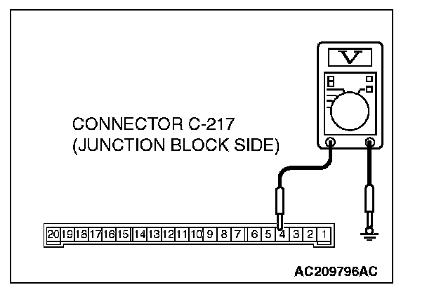 1. Disconnect ETACS-ECU connector C-217 and measure the voltage available at the junction block side of the connector.