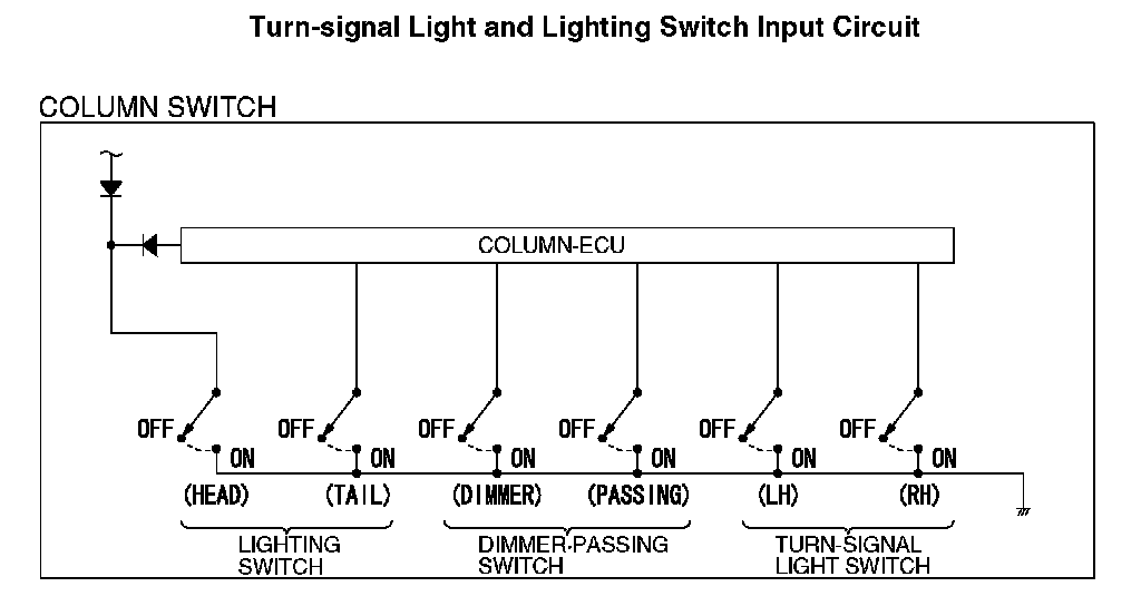 2. The input signal from the column switch (turn-signal light and lighting switch) should be able to be checked and the functions described in the "CIRCUIT OPERATION" should work normally.