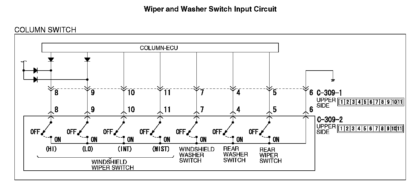 2. If the equipment described in "CIRCUIT OPERATION" work normally, the input signal from the column switch (wiper and washer switch) should be normal.