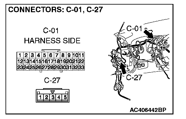 NOTE: Also check intermediate connectors C-27, D-29 and joint connector C-01. If intermediate connector C-27, D-29 or joint connector C-01 is damaged, repair or replace the connector as described.