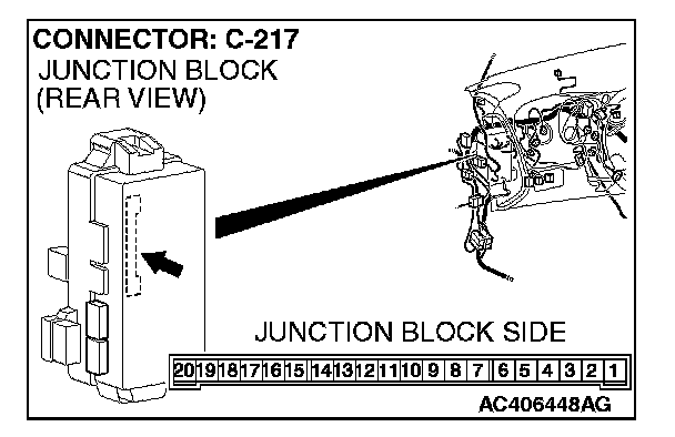 1. Disconnect ETACS-ECU connector C-217 and measure the voltage available at the junction block side of the connector.
