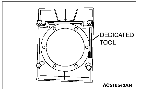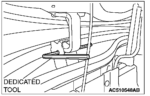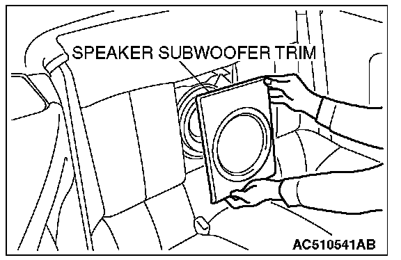 13. Place the dedicated tool on the rear speaker subwoofer trim, and then assemble the speaker subwoofer trim.
