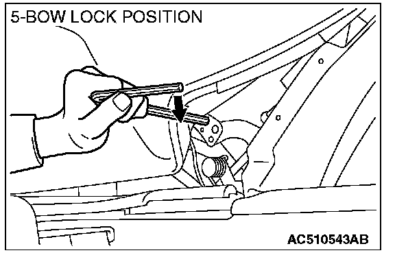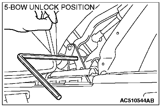 4. Insert the dedicated tool into the hexagon hole and turn the tool downward to release the lock of the 5-bow.