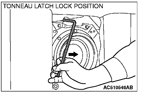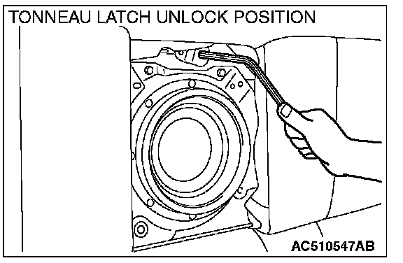 7. Raise the tonneau panel, and insert the dedicated tool into the hinge hole to hold the tonneau panel in place.