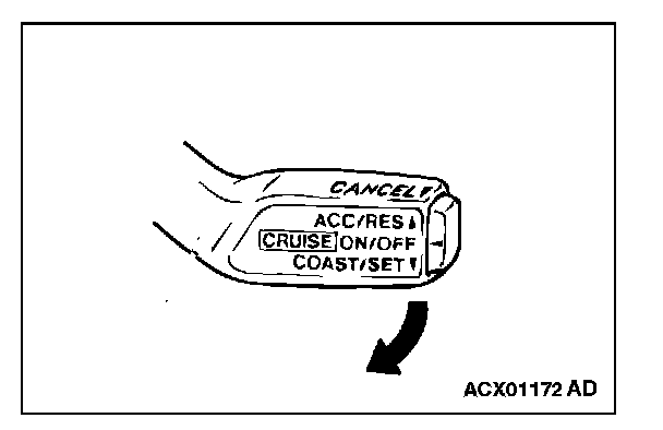 1. The auto-cruise control switch is pulled in the direction of the arrow.