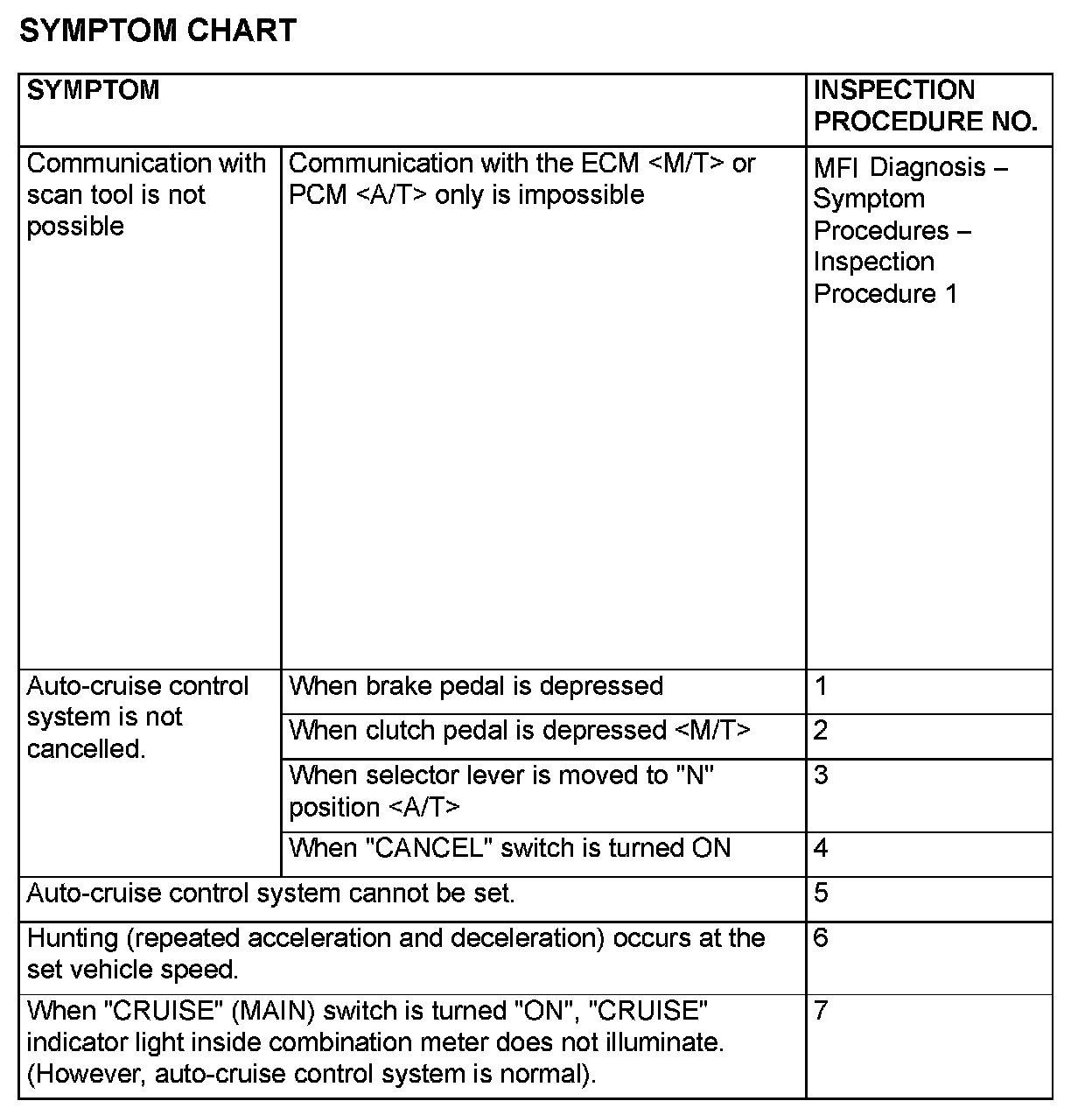 Symptom Chart:
