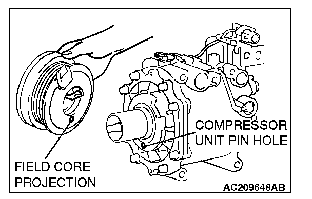 Line up the pin hole on the compressor unit with the field core projection and attach.