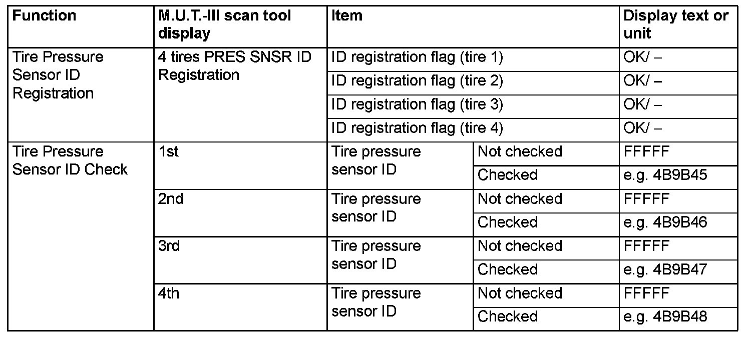 TPMS Special Function Data List