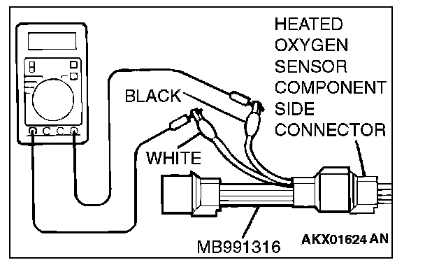 1. Disconnect the heated oxygen sensor connector and connect special tool MB991316 to the connector on the heated oxygen sensor side.