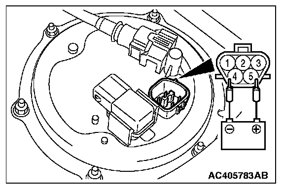 5. When the fuel pump drive connector is attached directly to the battery, check if the sound of the fuel pump operation can be heard. If no operating sound is heard, replace the fuel pump module.