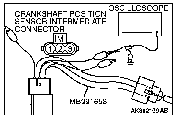3. Disconnect the crankshaft position sensor intermediate connector, and connect the test harness special tool (MB991658) between the separated connector.
