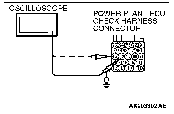 3. Connect the oscilloscope to check harness terminal No. 103. (Check the crankshaft position sensor signal wave pattern.)