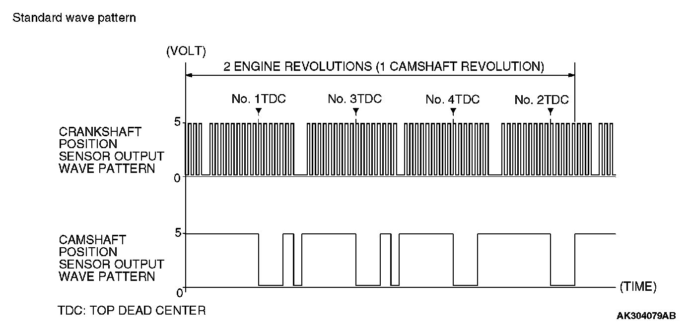 INSPECTION PROCEDURE USING AN OSCILLOSCOPECAMSHAFT POSITION SENSOR AND CRANKSHAFT POSITION SENSOR