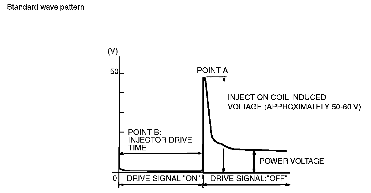 Point A: Presence or absence of induced electromotive force from the motor turning. (Refer to abnormal wave pattern.)