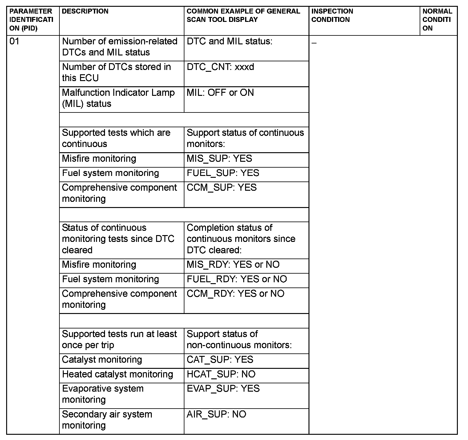 GENERAL SCAN TOOL (GST) MODE 01 REFERENCE TABLE