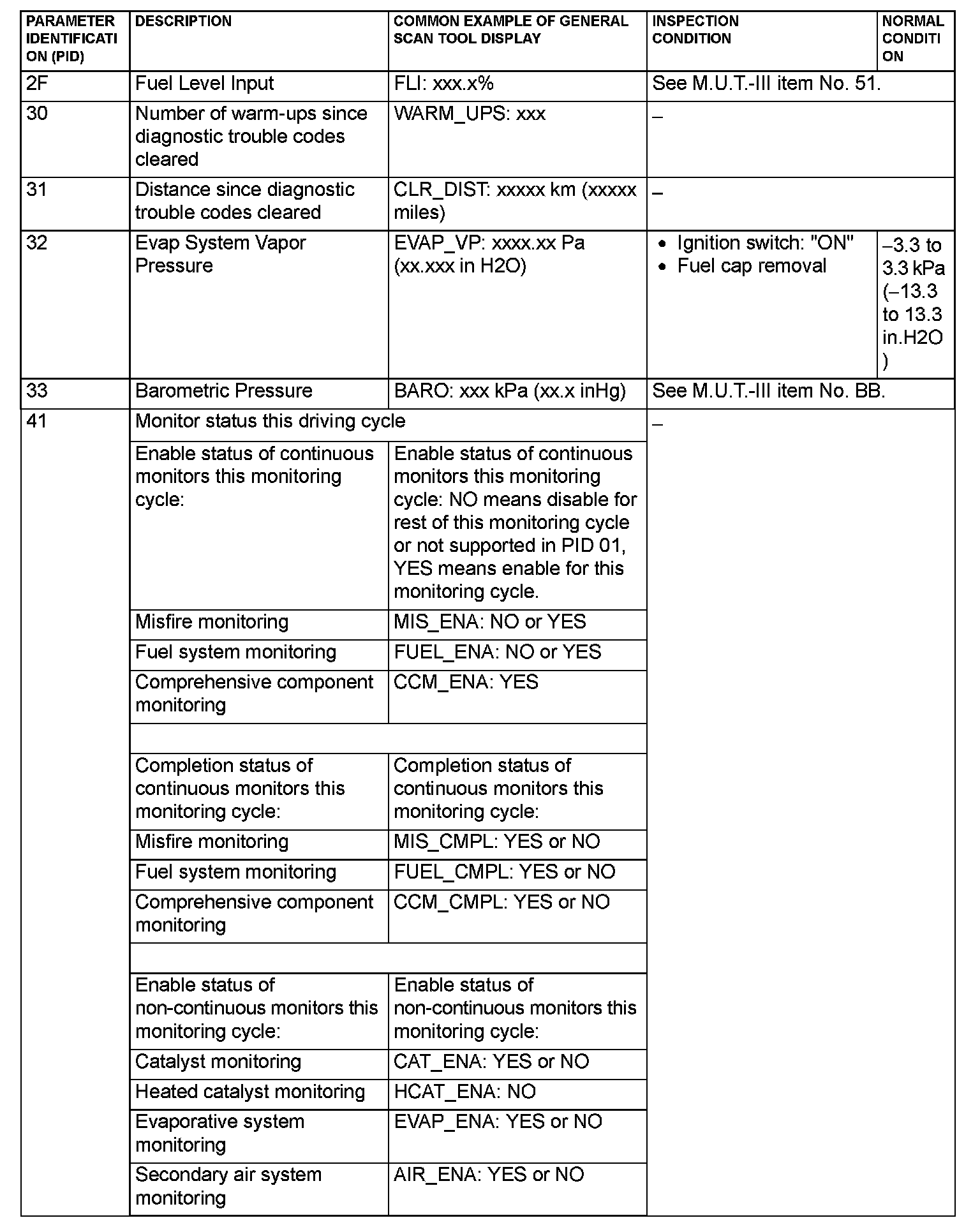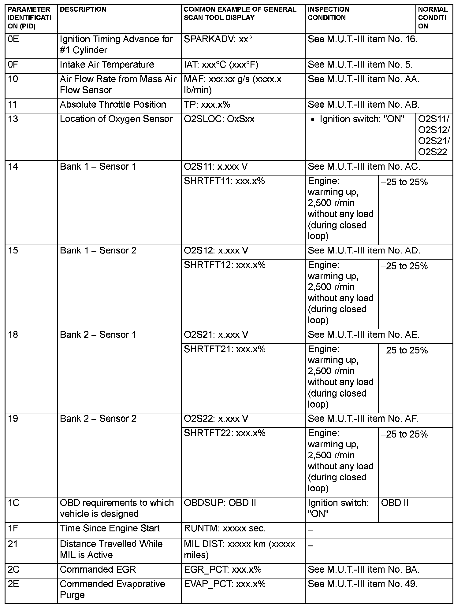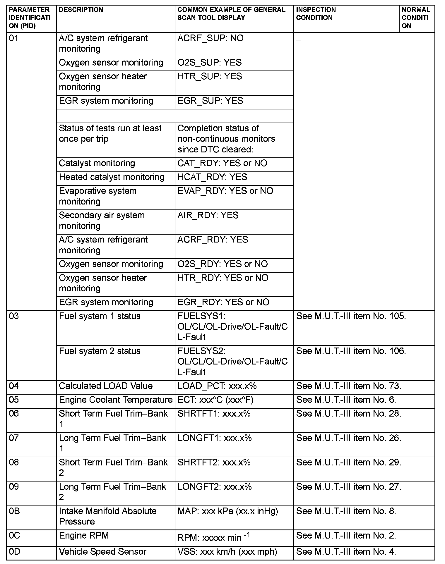 NOTE: GST MODE 01 can be accessed through the use of a general scan tool.
