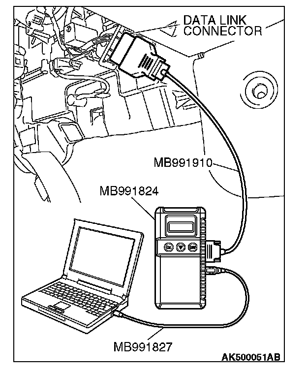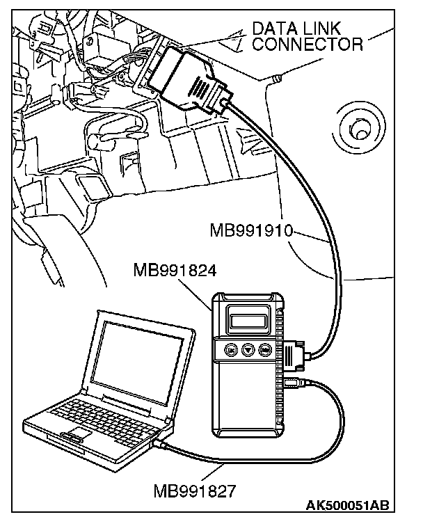 1. Connect scan tool MB991958 to the data link connector.