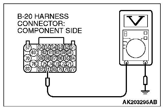 1. Disconnect the connectors B-20 and measure at the harness side.