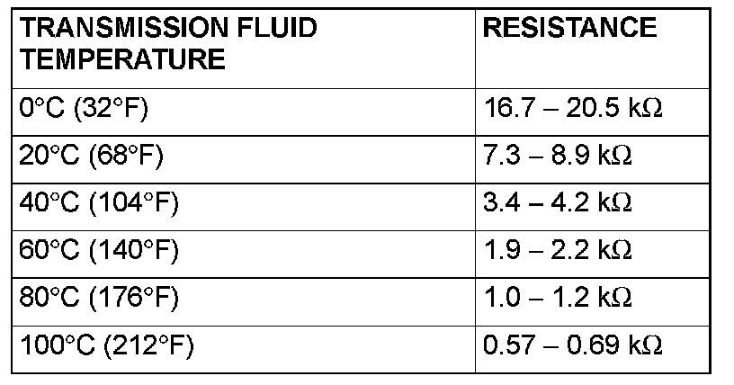 3. If the transmission fluid temperature sensor resistance is outside the specified range and the shift indicator light (D or 1 through 4 or 5) is flashing, replace the transmission fluid temperature sensor.