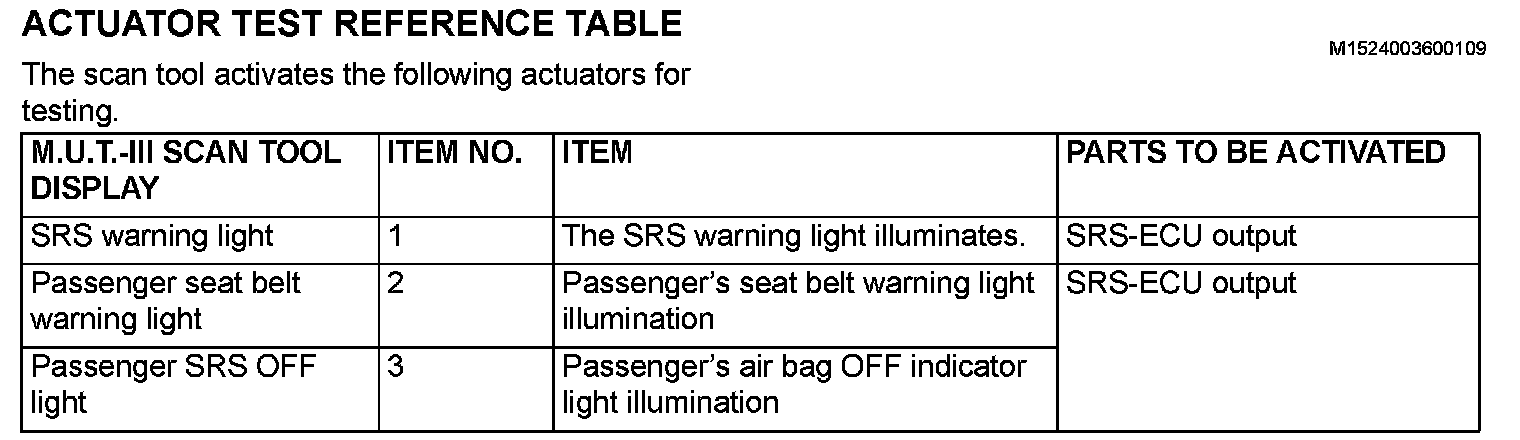 Actuator Test Reference Table: