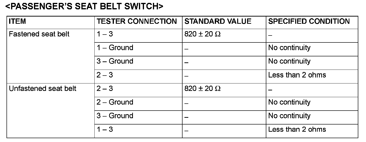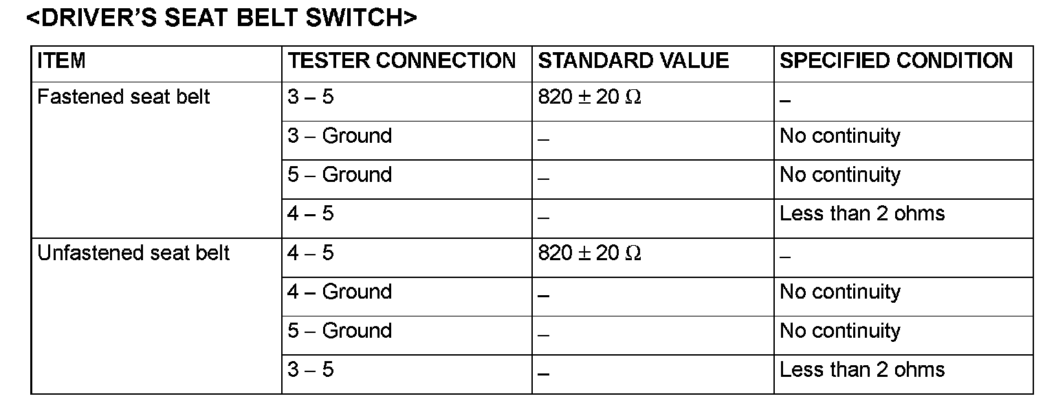 Driver's Seat Belt Switch: