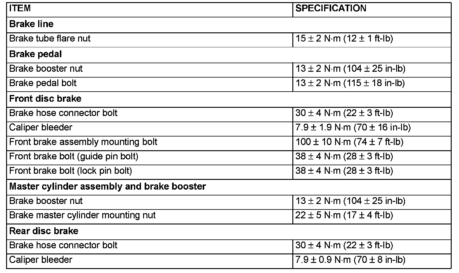 Fastener Tightening Specifications