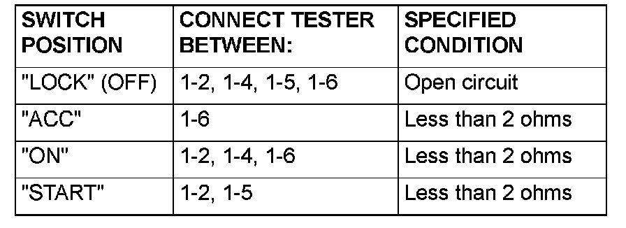 connector C-308 without removing the ignition switch and steering lock cylinder. Then check the continuity.