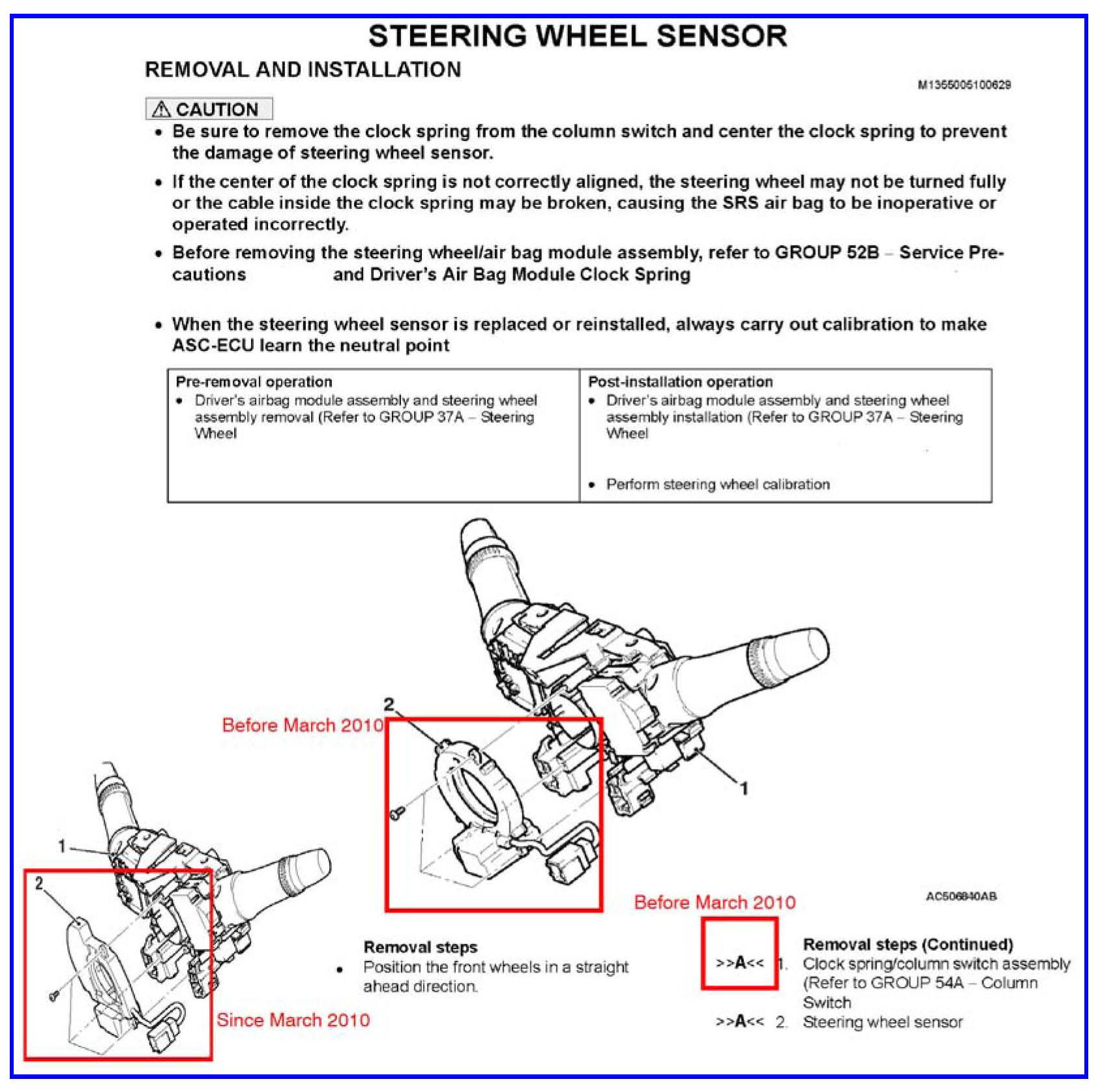 2010 Lancer Sportback Service Manual Group 35C - Steering Wheel Sensor Removal and Installation