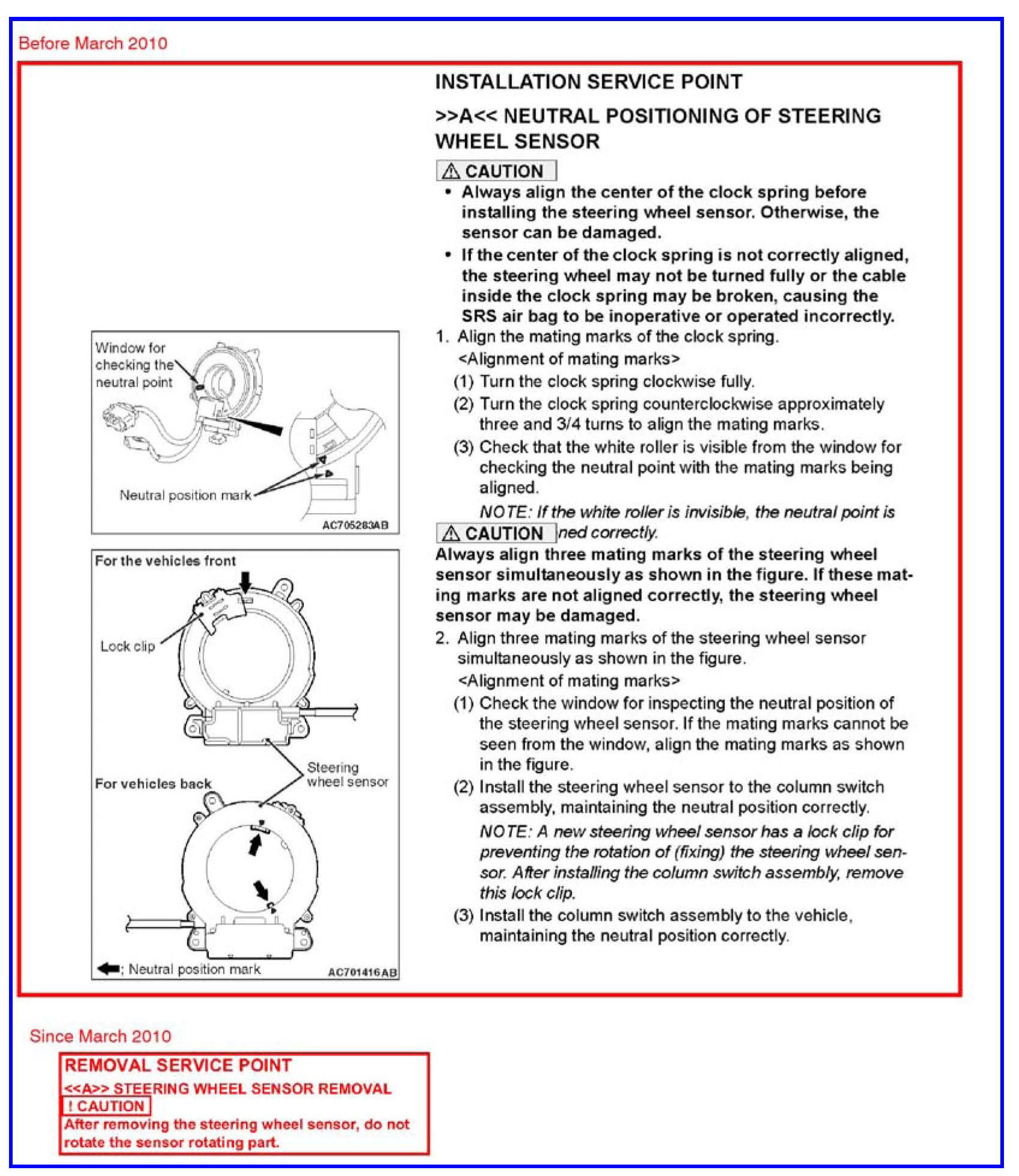 2010 Lancer Service Manual Group 35C - Steering Wheel Sensor Removal and Installation
