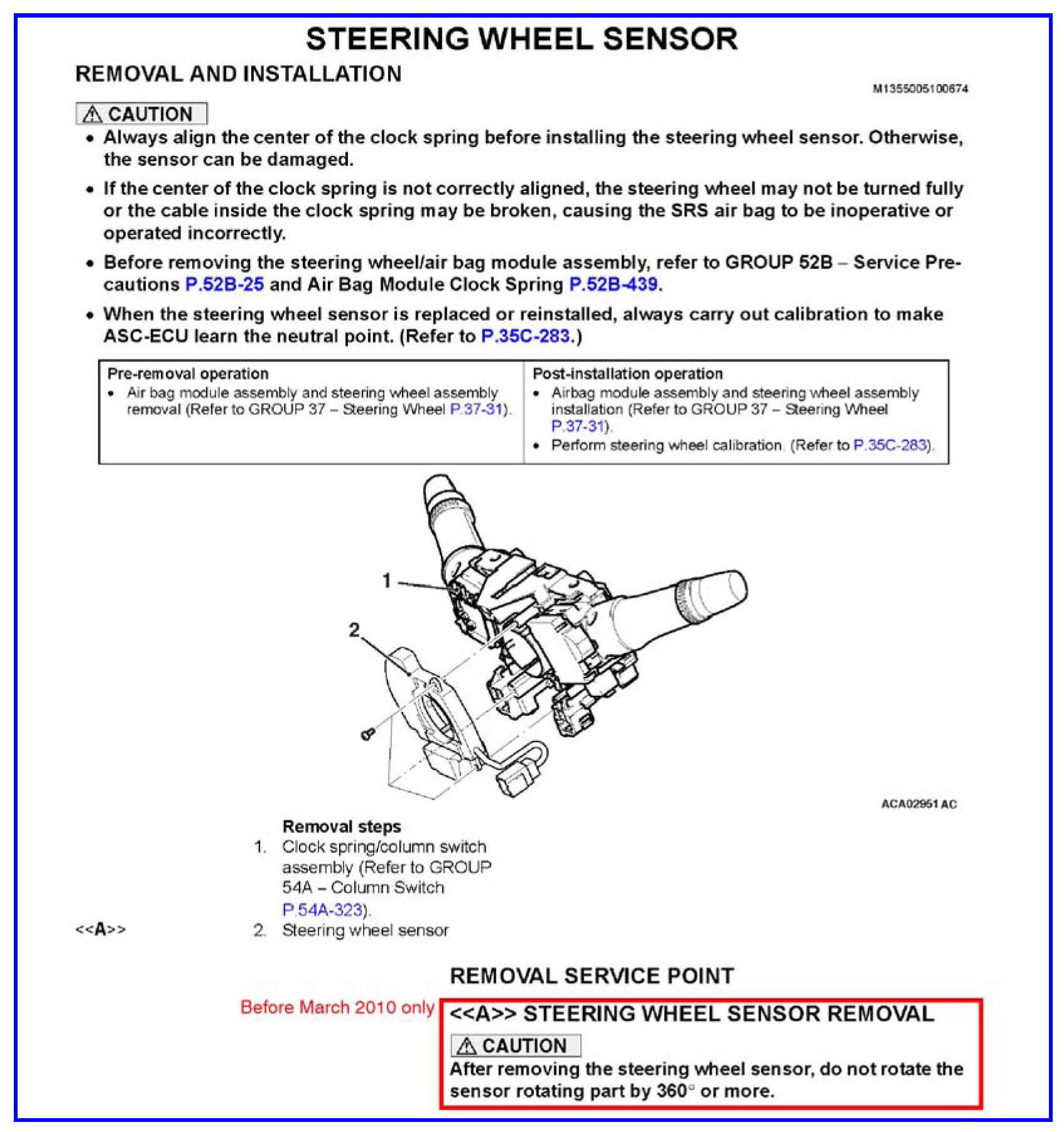 2010 Lancer Evolution Service Manual Group 35C - Steering Wheel Sensor Removal and Installation