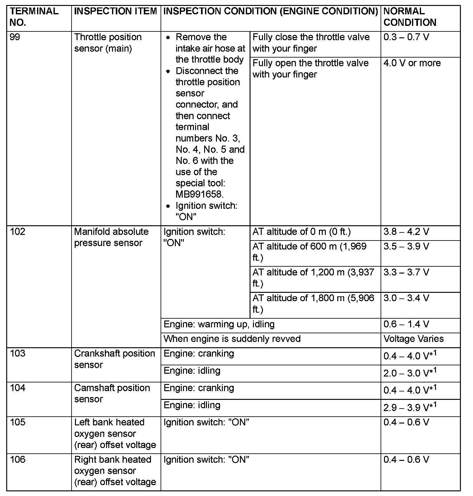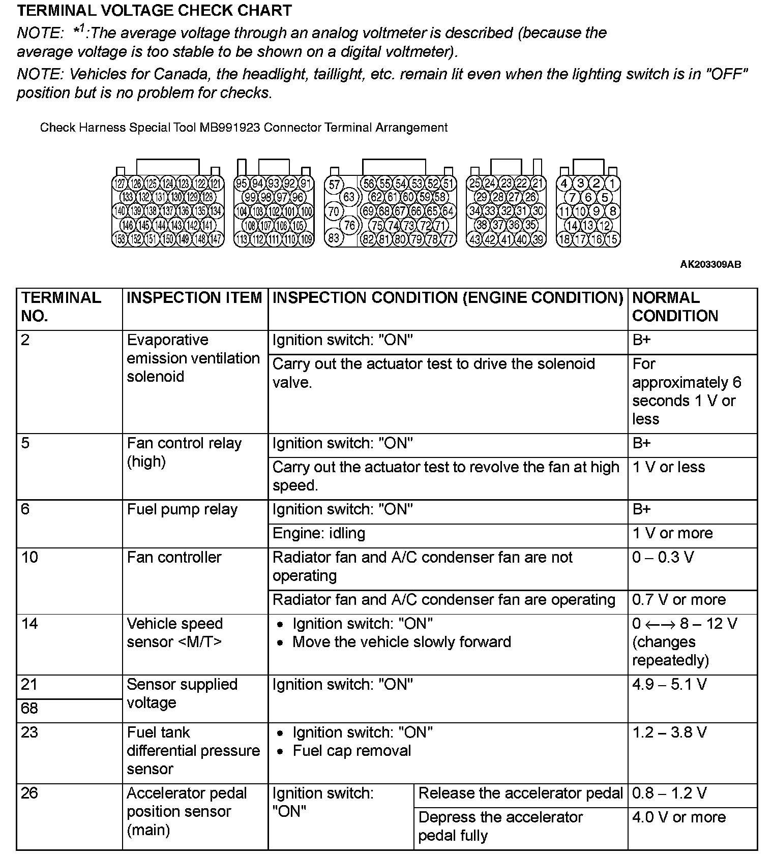 Terminal Voltage Check Chart (Part 1):