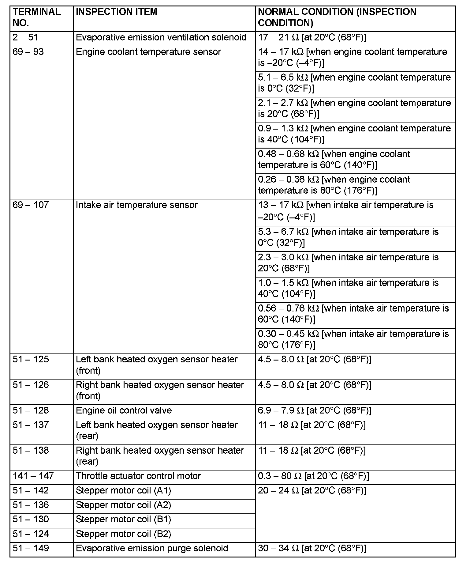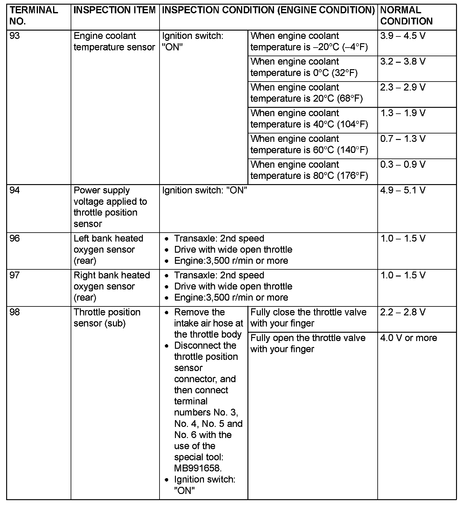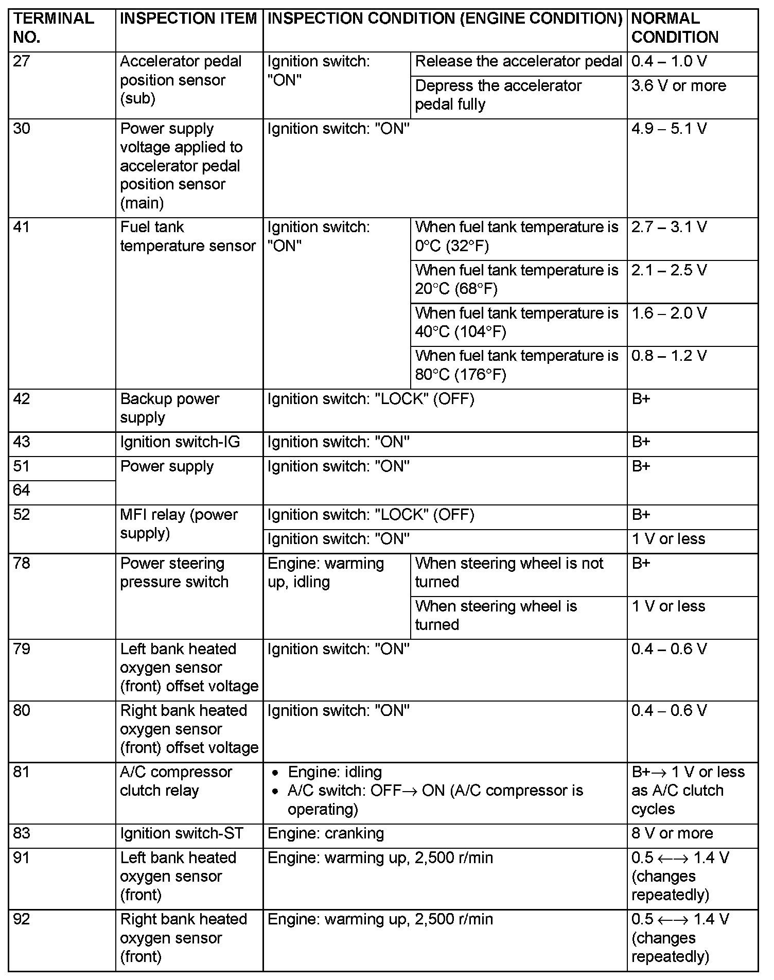Terminal Voltage Check Chart (Part 7):