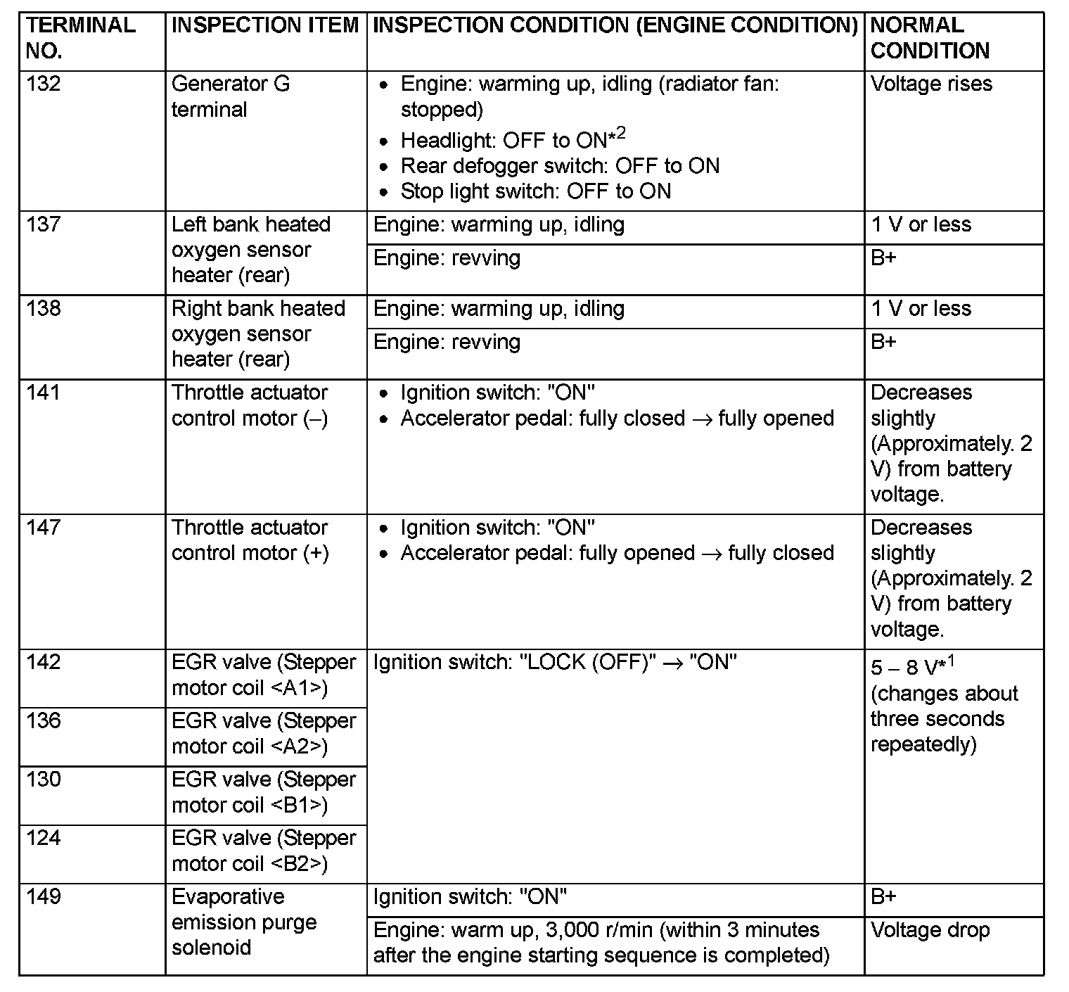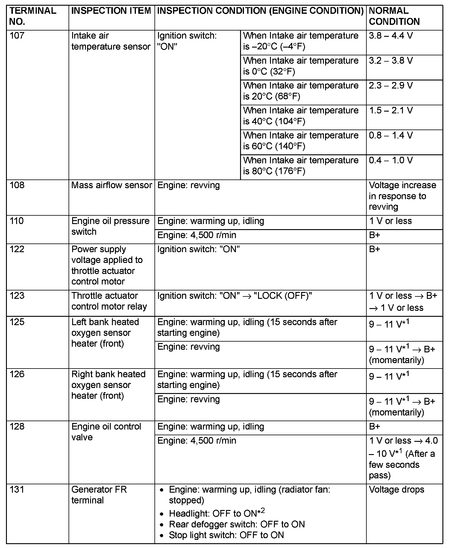 Terminal Voltage Check Chart (Part 2):
