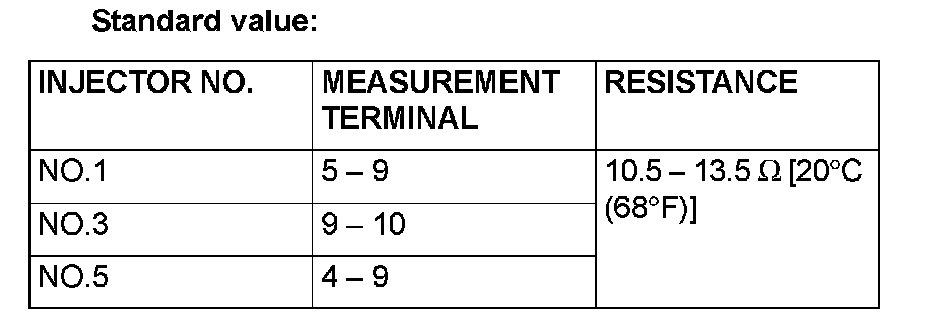 Standard value: 10.5 - 13.5 ohms [at 20 °C (68 °F)]