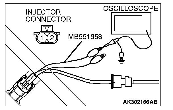 1. Disconnect the injector connector, and connect the test harness special tool (MB991658) between the separated connector. (All terminals should be connected.)