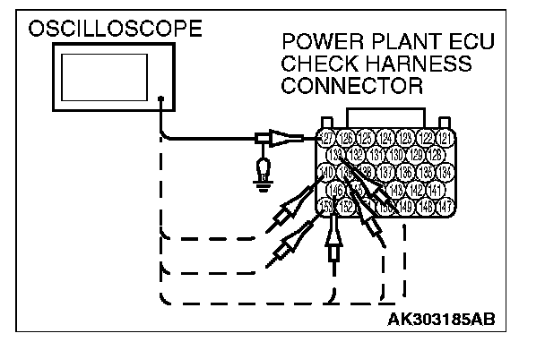 3. Connect the oscilloscope to check harness terminal No. 103. (Check the crankshaft position sensor signal wave pattern.)