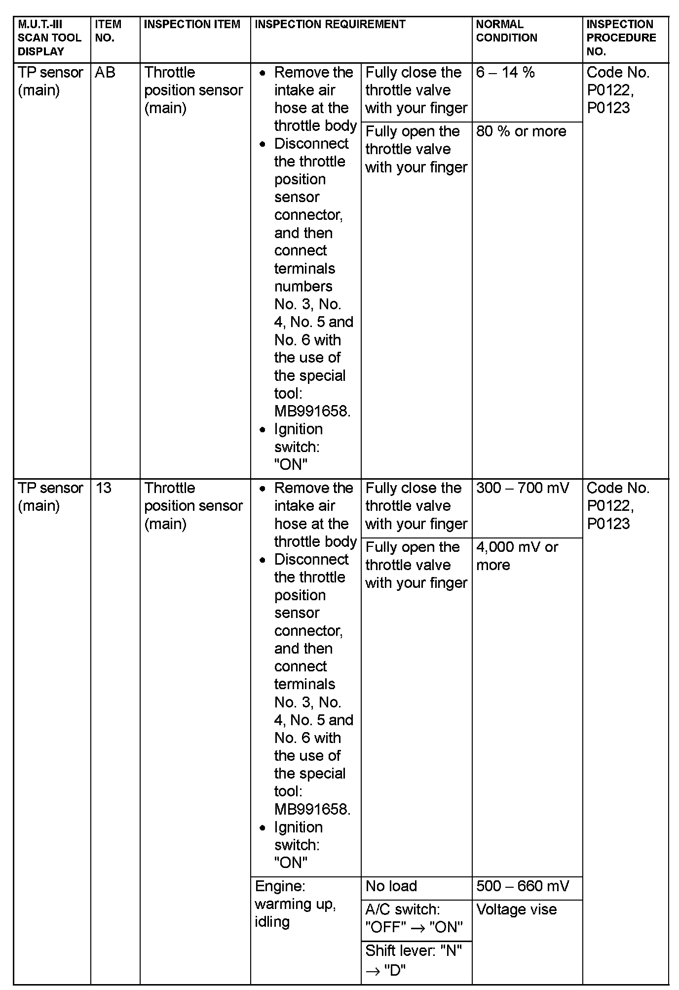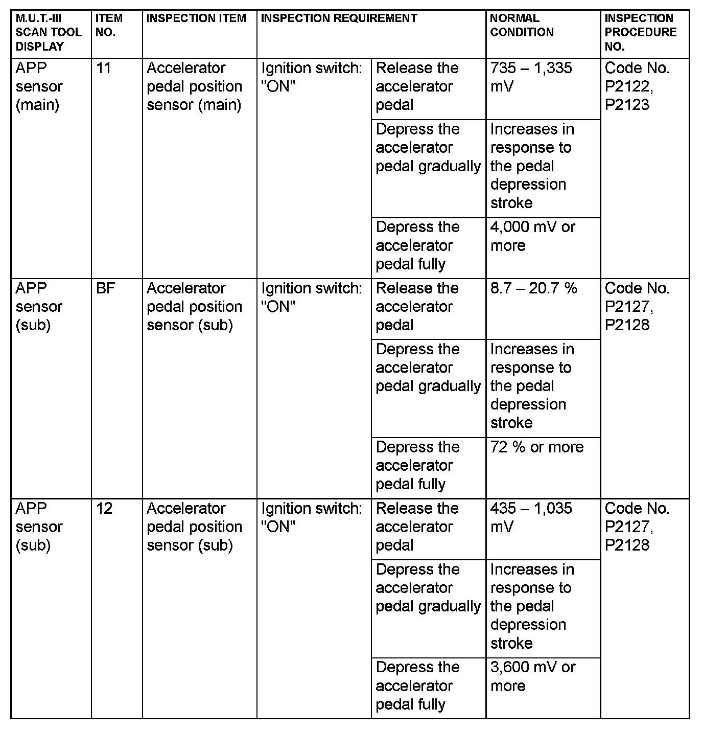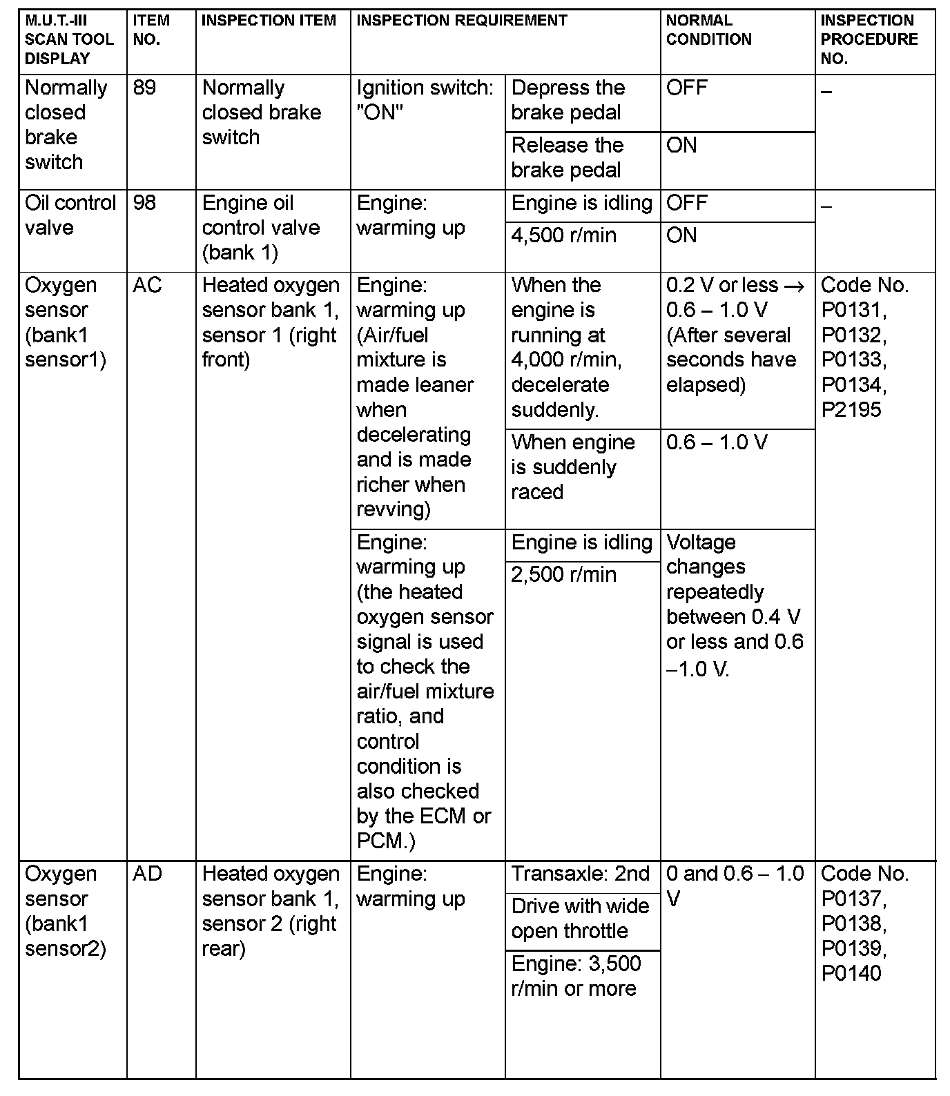 *1: In a new vehicle [driven approximately 500 km (311 mile) or less], the mass airflow sensor output value is sometimes 10 % higher than the standard value.