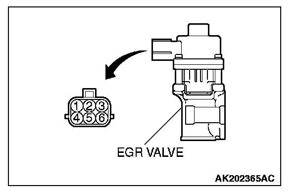 4. Measure the resistance between terminal No.5 and either terminal No.6 or terminal No.4 of the connector at the EGR valve.