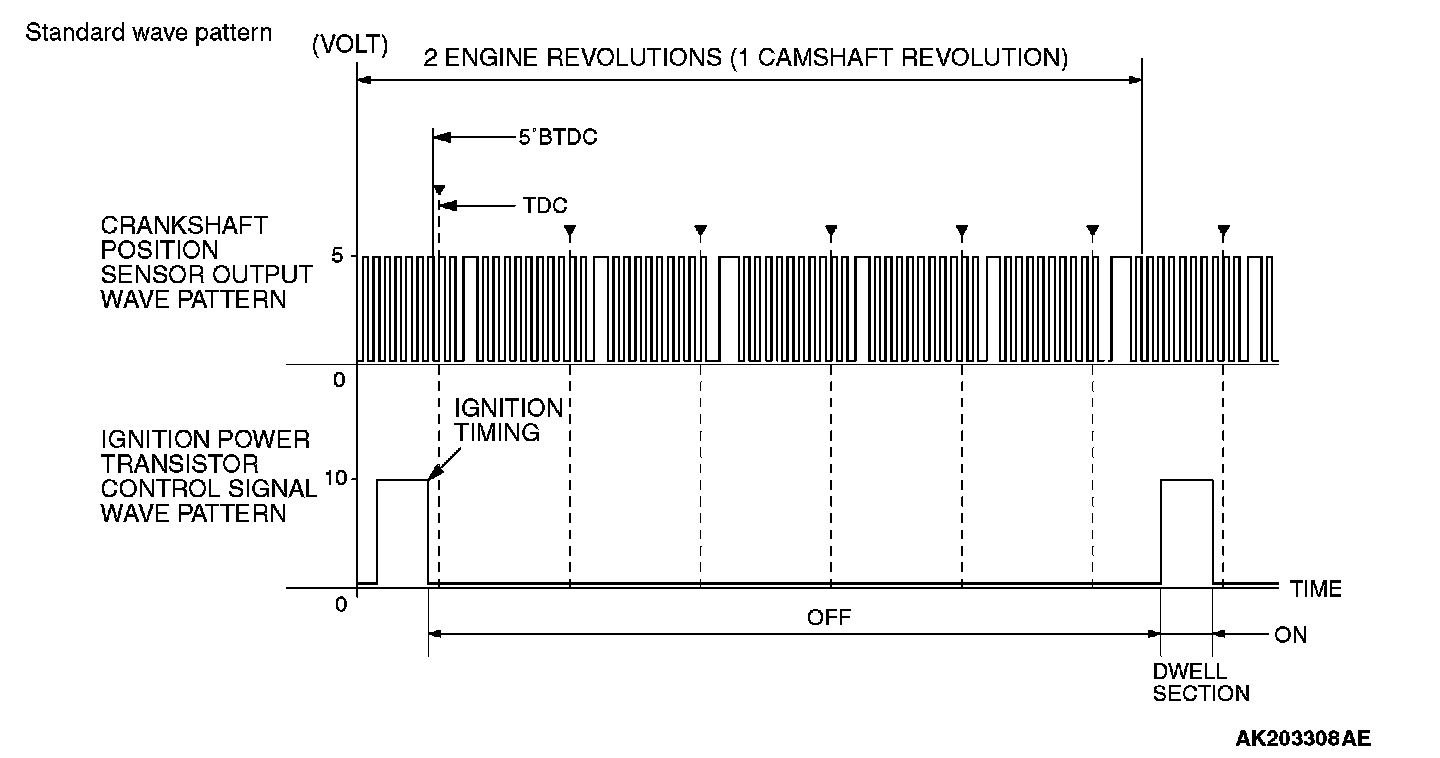 Point: The power transistor control signal (ignition timing) is advanced when the engine speed is increased.